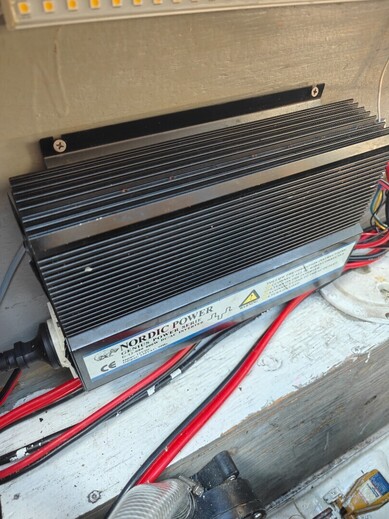 - BlueSea pääkytkin ja automaattirele akkujen välissä.