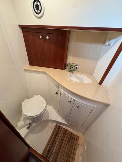 Tämä vene on erinomainen valinta sinulle, joka etsit laadukasta ja vähän ajettua flybridge-venettä järvikäyttöön. Vene on ollut koko ikänsä makeissa vesissä, säilytetty lämpimässä hallissa ja sitä on huollettu säännöllisesti – turvallinen ja pitkäikäinen valinta vaativalle veneilijälle.