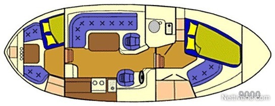 Vakiovarustus, polttoainesäiliö 300 l, vesi 180 l, septi 95 l, vesi wc alapesusuikku, septi imulla ja pumpulla mereen, kylmä / kuumapainevesi, jääkaappi 12 / 230 volttia tai nestekaasu, kaksiakkujärjestelmä, uuni / liesi nestekaasu, uima ja keulaportaat, merkinantotorvi, RST kaiteet sivuilla ja ohjaamon katolla, lasin pyyhkijät 3 kpl, pollarit 6 kpl, RST köli ja kalarauta, trailerikoukku, suuri ankkuri poksi keulassa, takakannella kaksi istuin laatikkoa tavaran säilytykseen, ym.