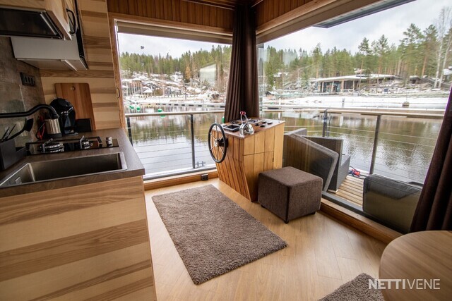 Tarjolla ainutlaatuinen mahdollisuus: Telakalla rakennettu ympärivuotiseen käyttöön tarkoitettu, erittäin laadukkaasti valmistettu saunallinen asuntolautta sisältäen 2MH + OH + AVOKEITTIÖ + SAUNA + WC!