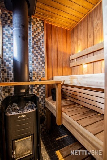 Pääkannella löytyy kaksi tilavaa makuuhuonetta, olohuone jonka yhteydessä täysin varustettu avokeittiö sekä erillinen ruokailutila. Tunnelmaa luomaan löytyy myös laadukas takka.