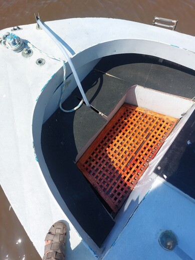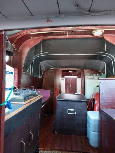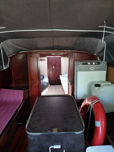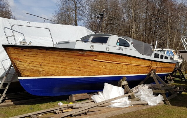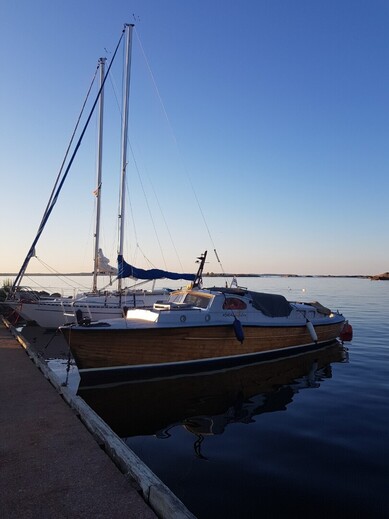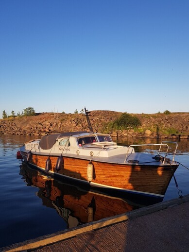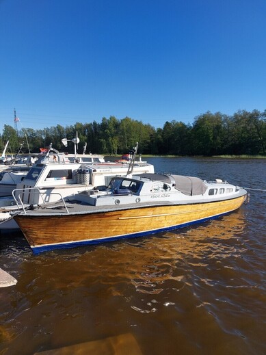 Mäntyrunkoinen, ilmeisesti Gösta Kyntzellin suunnittelema ja Ilmari Pakkasen Heinälahdessa veistämä vene. Alunperin ollut myös pieni masto apupurjeella. Kannet on myöhemmin noin 15 vuotta sitten kuidutettu. Veneessä näkyy ajan patina ja vaatii joka keväisen huollon. Veneellä on maksettu talvisäilytyspaikka ensi kevääsern saakka. Nykyisen laituripaikan sekä talvisäilytyspaikan pitäminen jatkossakin on todennäköisesti mahdollista. Nykyisellä paikalla talvisäilytys sekä laituripaikka reilu 200 €/vuosimaksu.