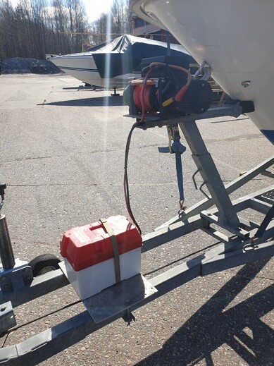 Hintaan sisältyy jarrullinen katsastettu Majava telitraileri vahvalla etäohjattavalla sähkövinssillä.