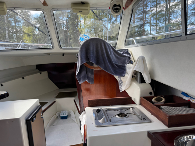 - sisämoottori, 4-tahti, Vetus, hyvällä väännöllä (pitempiä matkoja Ruotsiin ja Tallinnaan, sekä Suomen saaristoissa)