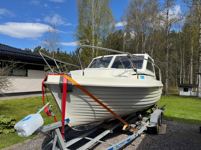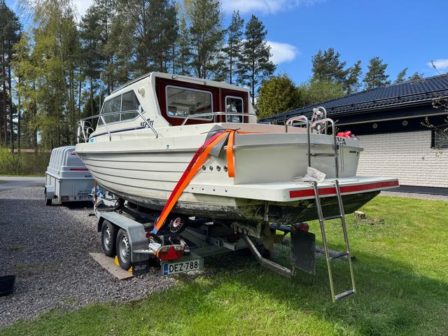 Hyvin pidetty retkivene toiselta omistajalta. Huollettu säännöllisesti vuosittain. Veneessä paljon varusteita. Vene sijaitsee Säkylässä, kesän käytetty Pyhäjärvellä, sitemmin nostettu taas trailerin päälle ja laitettu taas myyntiin. Penkit ja patjat viety lämpimään varastoon, mutta kaikki istumapaikat ja patjat tulee kaupassa mukaan (ovat hyvässä kunnossa ja valmiita käyttöön heti). Pöydän päällä näkyy muovisuoja, pöytä hyvässä kunnossa.