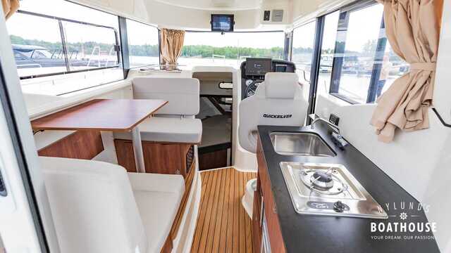 Sinun ei enää tarvitse valita huippuunsa viritetyn kalastusveneen ja täysiverisen lomaveneen välillä – Quicksilver 905 Pilothouse on molemmat samassa paketissa. Vene on suunniteltu kalastukseen, seikkailuihin ja vapaa-aikaan, turvallisuus ja mukavuus etusijalla. Tämä 905 Pilothouse on erinomaisesti varusteltu niin tavoitteelliseen kalastukseen kuin mukavaan veneilyyn. Varustukseen kuuluu joystick-ohjaus, autopilotti, Skyhook-järjestelmä, ilmastointi, generaattori, tutka, lämminvesivaraaja, VHF-radio, maasähkö, mikroaaltouuni sekä kaksi sähkökäyttöistä Scotty-takilaa – kaikki mitä tarvitset maksimaaliseen hallintaan, mukavuuteen ja toimivuuteen vesillä.