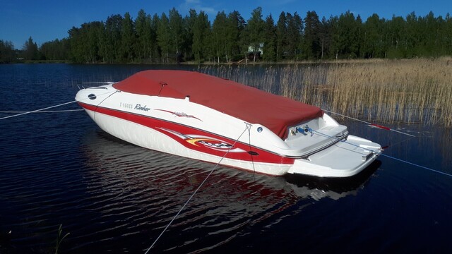 Hyväkuntoinen,vähän ajettu jenkkivene V8 koneella ja uudella vetolaitteella.Vetolaitteella ajettu n.25h.Samalla vaihdettu teräspotkuri.