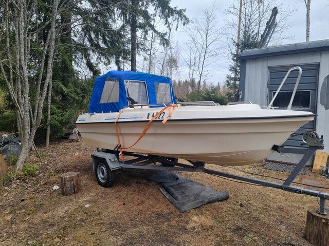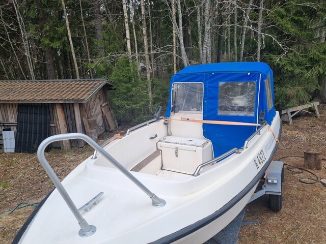 Iäkäs mutta hyvin pidetty vene hyväkuntoisella kuomulla. Kone 40 hp ruisku Honda. Vesipumpun impelleri ja öljyt ja suodatin vaihdettu.