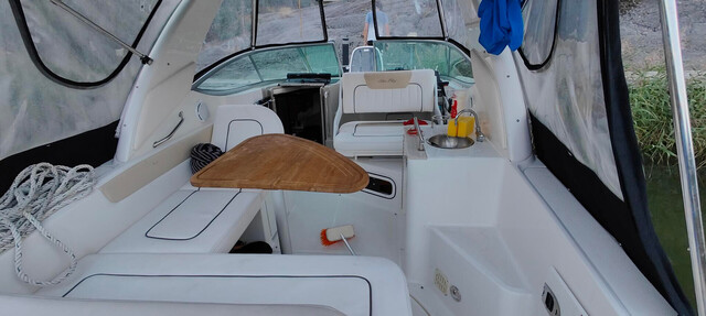 Hyvin varusteltu ja vähän ajettu matkavene lämmityksellä ja muilla mukavuuksilla. Huom. uudempi malli.