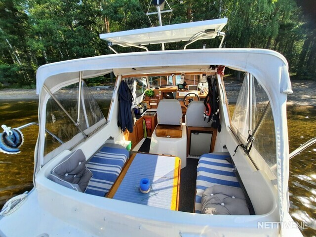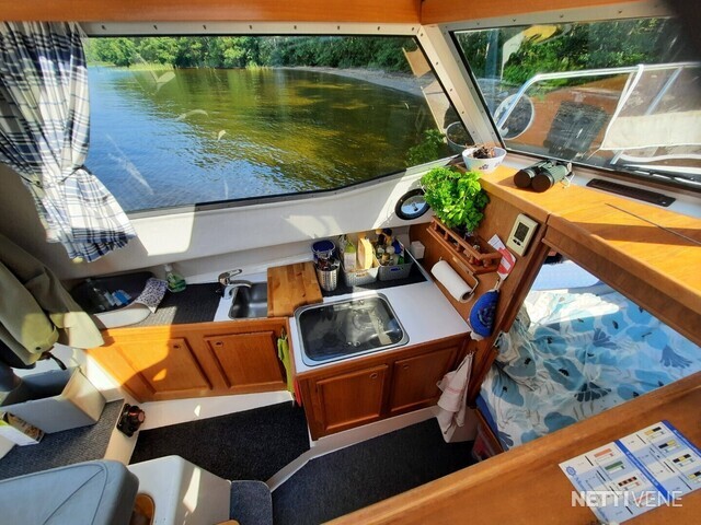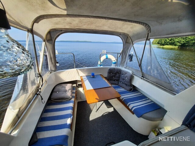 Vene on ollut meillä Päijänteellä vuodesta 2019. Hyvät varusteet mm. lämmin suihku. uudehko kompressorijääkaappi pakastinlokerolla joka voi olla koko kesän kylmänä koska aurinkopaneeli tuottaa sähköä.