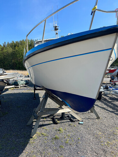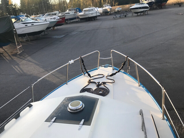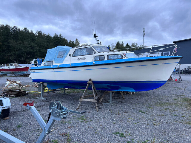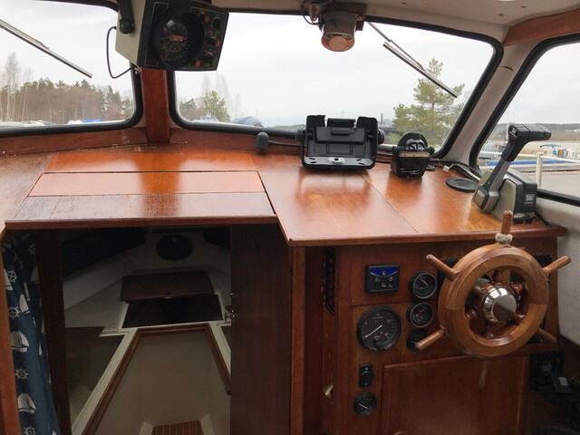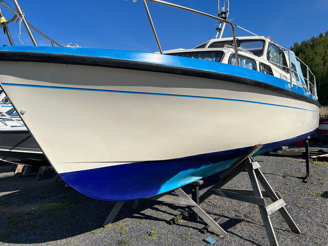 Hyväkuntoinen retkivene jossa yöpyy neljä henkeä mukavasti. Vene on tukeva kovemmassakin kelissä. Akseliveto on edullinen ylläpitää sekä erikoisperäsin tarjoaa suuntavakaata ja taloudellista ajettavuutta. Hyvä matkanopeus 12 kn jolloin kulutus alle 1 l/mpk. Kuomu uusittu 2022, Hydrauli ohjaus, Volvo Penta QL sähkötrimmit. Vaihto mahdollinen nopeampaan avo/retki-veneeseen.
