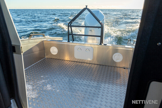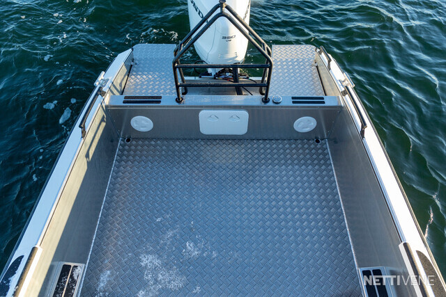 vaativiin kuljetus- ja työtehtäviin, mutta se toimii loistavasti myös kalastuskäytössä, sukeltajan tukikohtana ja vesiurheilujen harrastamiseen. Taka-avotilan turkilla on vakiovarusteena järeät kiinnityspisteet