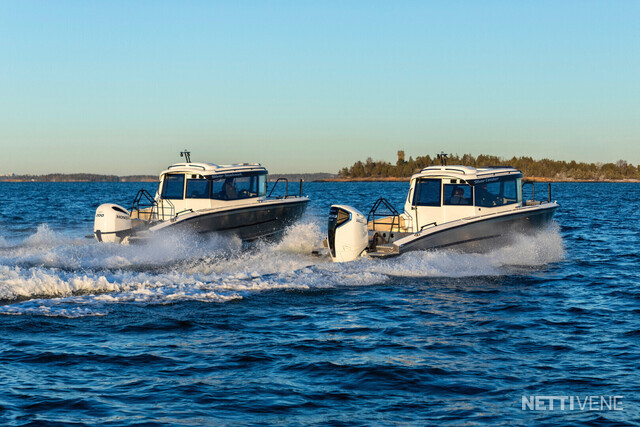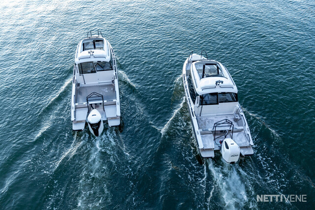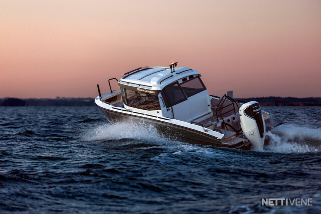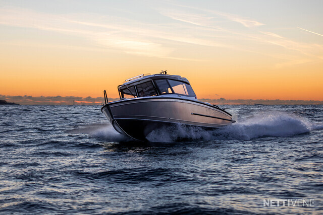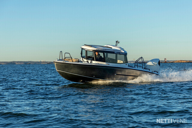 kalastuskäyttöön, asettaen uuden standardin tämän kokoluokan hyttiveneille. Uutuusvene on täysin Suomessa valmistettu ylivoimainen yhdistelmä käytännöllisyyttä, mukavuutta ja suorituskykyä.