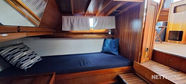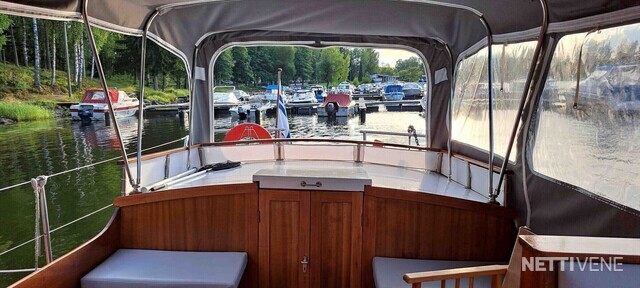 2019-2024 peruskorjattu mahonkivene. Valmistajan kuiduttama pohja. Pohja soodapuhallettu, 4 x Hempel epoksi primer + Blakes Cruising myrkkymaali. Kyljet ja muut maalatut pinnat Toplac. Kannessa Owatrol D1 + D2. Muutoksia kaiteissa ja luukuissa. Uutta tai uusittua: mahonkinen valomasto, uimataso, uimaportaat, ikkunalasit ja tiivisteet, Raymarine Element karttaplotteri + Navionics XL kartta, kompassi, kuomu (sivut ja perä avattavissa/otettavissa pois), patjastot, vessa ja allas, bide, 3-liekkinen kaasuhella, jääkaappi, 30 l lämminvesivaraaja, vesi- ja septitankit ruostumattomasta (mittareilla), 6 lepuuttajaa telineillä, Bruce ankkuri ja ankaroliina, Bluetooth radio, uudet käynnistysakut 2x75 A, uudet hupiakut 2 x 115 A. Vene rekisteröity 12 hengelle. Näyttävä kokonaisuus vanhaa arvostavalle.