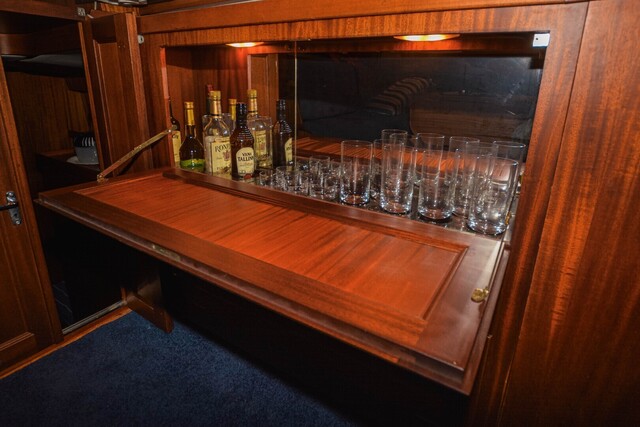 Tilava salonki tarjoaa 360 asteen näkymät, suuren istuinryhmän klaffipöydällä, runsaasti säilytystilaa sekä tyylikkään baarikaapin.