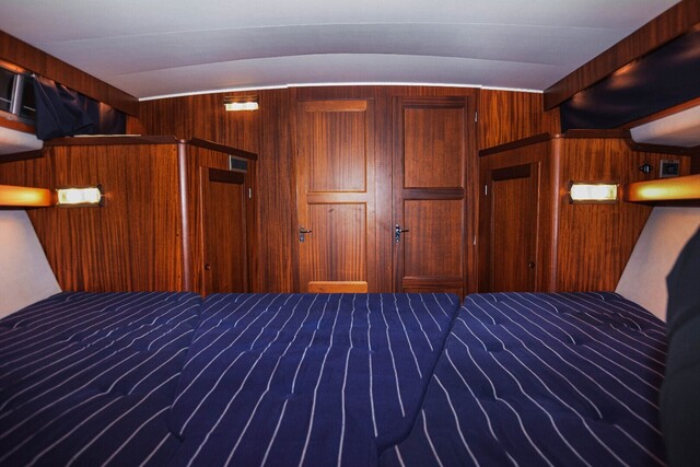 Ylellinen omistajanhytti keulassa sisältää leveän vuoteen, runsaasti säilytystilaa sekä suora käynti WC- ja suihkutilaan.