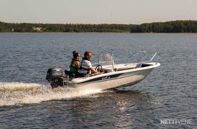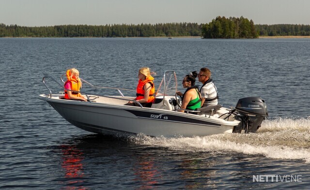 Suvi 43 on mökki- ja kalastuskäyttöön soveltuva ohjauspulpettivene. Mallissa on kaksi lukittavaa säilytystilaa ja pieni keulakansi, jonka alle jää köysiboxi. Suvi 43 on kokoisekseen vakaa ja todella mukava ajettava. Moottoriteho 20-25 hv. Soutumahdollisuus. Lyhyt- tai pitkärikiselle moottorille. Suvi 43 ei ole sadevesityhjenevä.