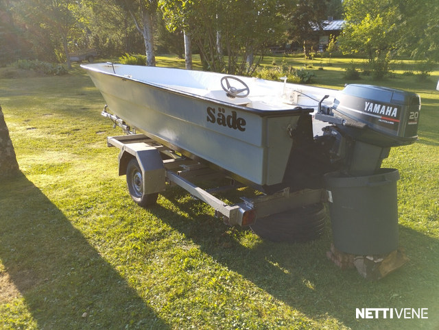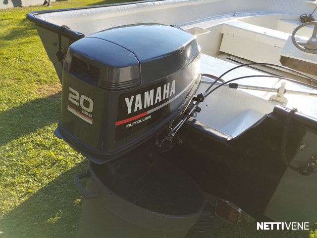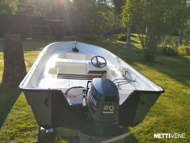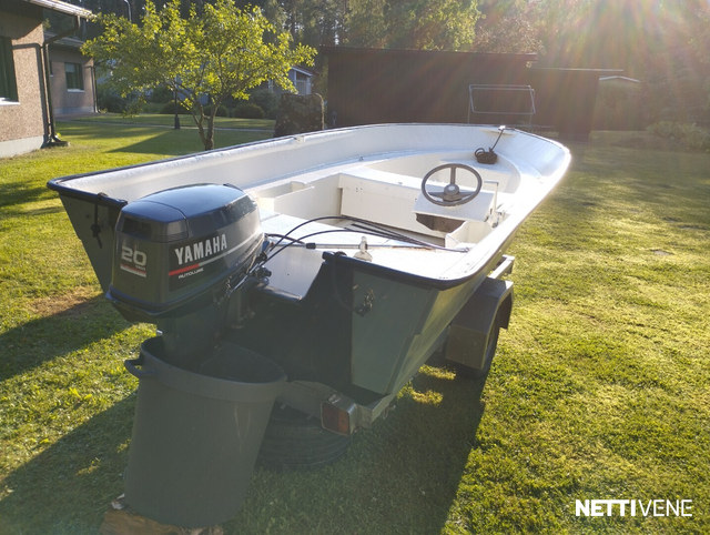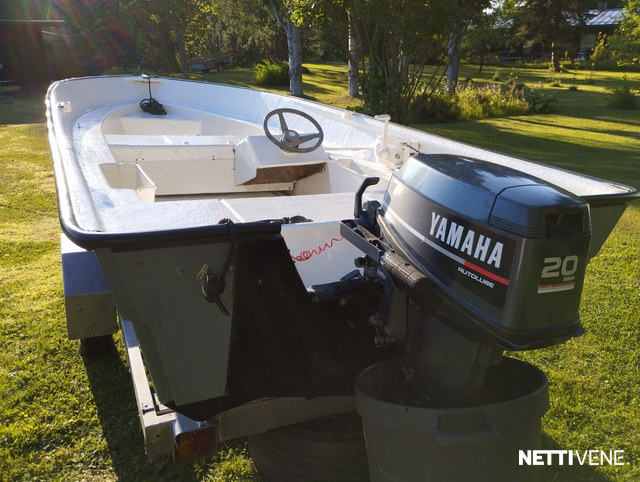 Timola, harmaa/valkoinen pulpettivene, jossa 20 heppainen todella hyvässä kunnossa oleva 2- tahti Yamaha. Kuvassa olevan trailerintekeleen saa halutessaan mukaan samaan hintaan.