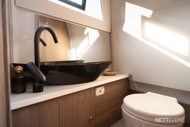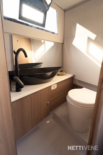 Jokainen pienikin yksityiskohta on mietitty loppuun, mm.terassit on tiivistetty ja vaikka ne ovat lähellä vesilinjaa, kiinni ollessaan niistä ei tule vettä veneen puolelle.