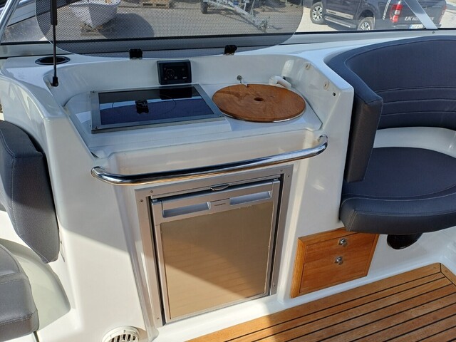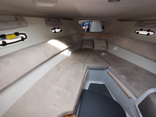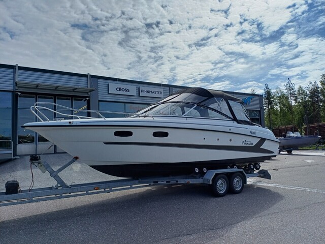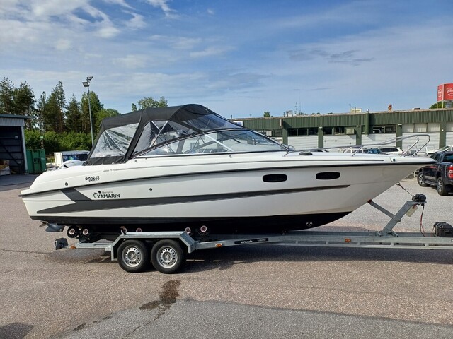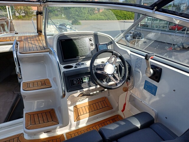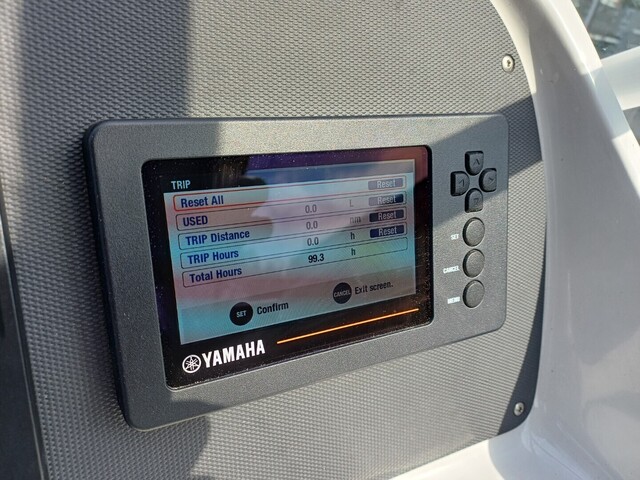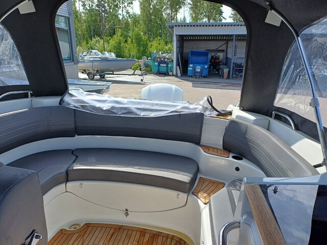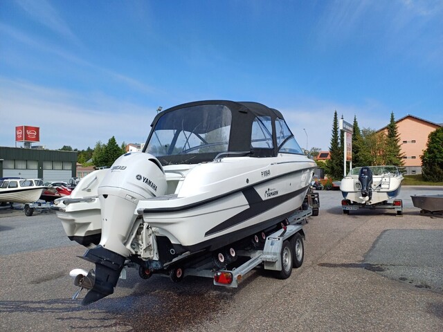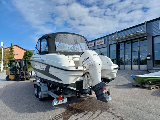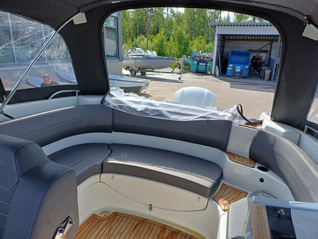 Erittäin kattavasti varusteltu ja siistikuntoinen yksilö pienillä tunneilla. Perässä tyylikäs Yamaha F300 BETX White -moottori jolla ajettu 115h. (Huom. perä uutena näissä harmaa, ei vaihdettu). Vm. 2020/2021, käyttönotettu 2021.