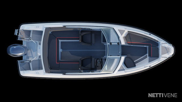 suuri tuulilasi suojaa matkustajia tuulelta, ja tyylikäs rosterikarmi viimeistelee veneen ilmeen. Alumiinirunko ja lasikuitukansi tekevät veneestä kestävän ja tyylikkään. Tasapainoiset ajo-ominaisuudet yhdistettynä sporttiseen luonteeseen tekevät siitä vauhdikkaan ja monipuolisen valinnan kaikentyyppiseen veneilyyn.