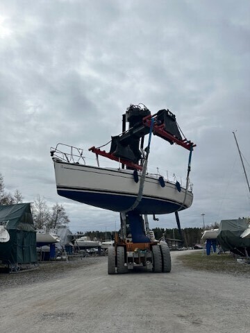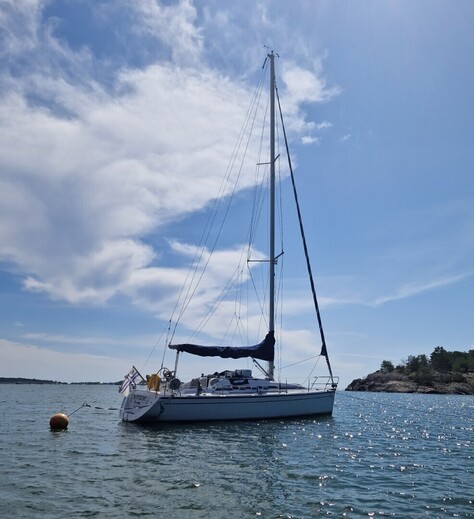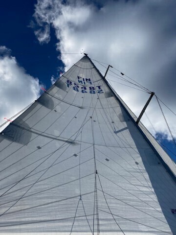 Purjeet talvisäilytetty, huollettu ja tarkastettu Aura Sailsilla vuosittain, purjeet hyvässä kunnossa. Uusi fokka hankittu 2024.