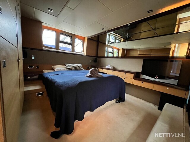 Tarjolla harvinainen Fairline 64GT. Tämä vene tarjoaa hulppeat tilat isollekin seurueelle.