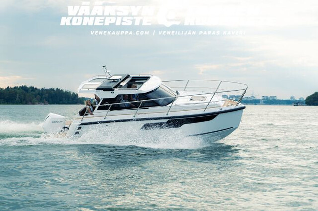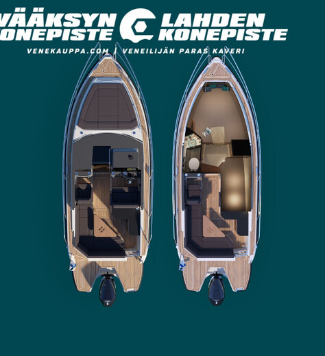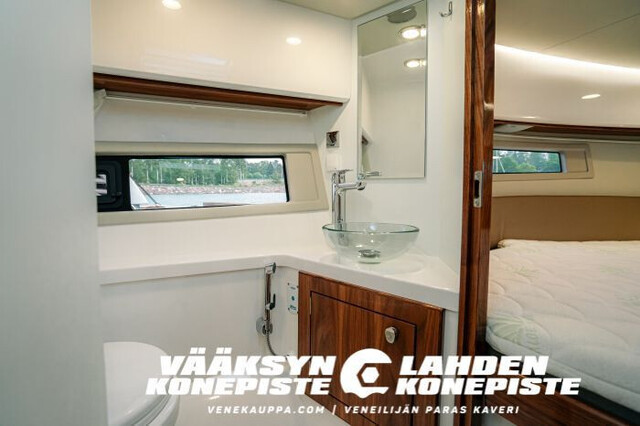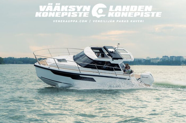 Tilava oleskelutila ja kaikki toiminnot yhdessä tasossa lisäävät käyttömukavauutta. Veneessä on myös erityisen käytännölliset ja tilavat säilytystilat.