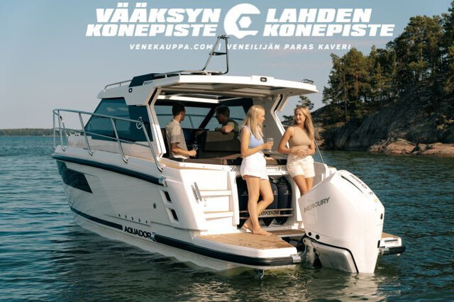 Sujuvasti käyvän ja herkästi reagoivan perämoottorin ansiosta matkanopeuden saavuttaminen on tehokasta ja tehokasta AquaDynamic-rungon ansiosta, jota käytetään kaikissa Aquador-malleissa.